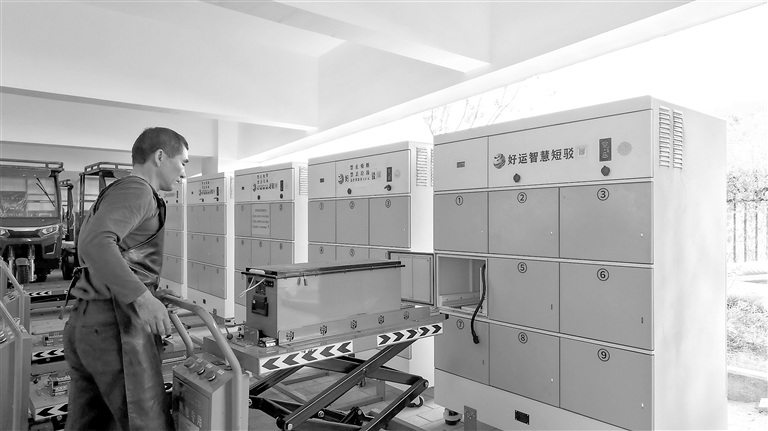 农批市场的高效运转,离不开配套服务的支持。200余辆穿梭于农批市场的短驳车,让整个市场能够高效、有序地运转。为保障短驳车稳定运行,农批市场专门建设了一个换电中心,可为短驳车提供快速换电及日常维修等服务。“农批市场有固定的泊车点,我们干活时直接来取短驳车就行,而且配置可升降货板,让搬运更省力。车没电了,到换电中心仅需2分钟就可以完成换电。”在农批市场从事搬运工作的黄三和告诉记者,现在钱赚得多了,工作强度小了,感觉生活更有奔头。
