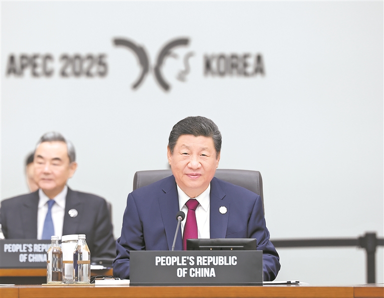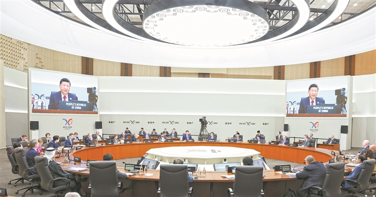 习近平强调,中国始终坚持对外开放的基本国策,以实际行动推动建设开放型世界经济。中共二十届四中全会通过了关于制定“十五五”规划的建议。中方将以此为契机,进一步全面深化改革,坚定不移扩大高水平对外开放,不断以中国式现代化新成就为亚太和世界提供新机遇。(讲话全文见第2版)