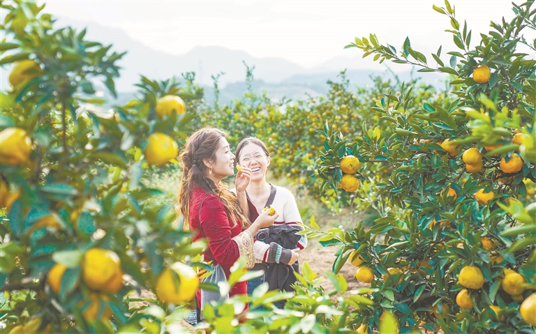10月25日,九江市庐山西海易家河蜜橘进入丰收季,果园内金黄果实挂满枝头,吸引游客前来采摘品尝。本报全媒体记者 梁振堂摄