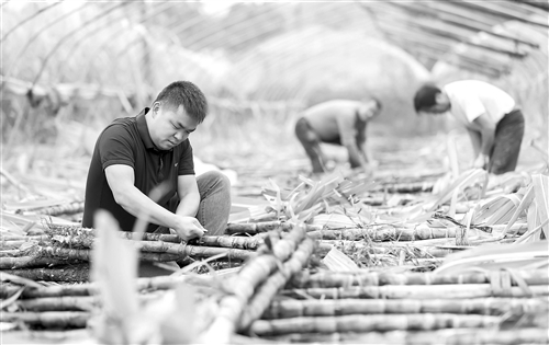 10月31日,瑞昌市范镇源源村蓬博种养家庭农场,村民正忙着采收甘蔗供应市场。
