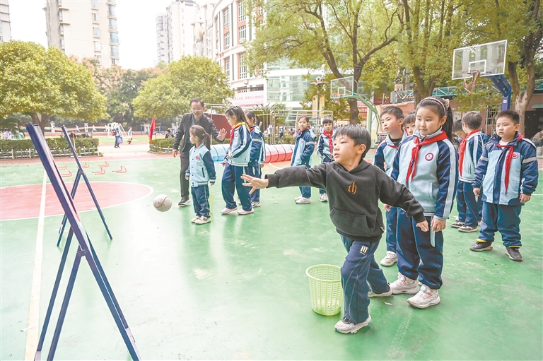 10月31日,在南昌市广南学校教育集团广南校区运动会上,学生在进行投掷靶比赛。该校通过举行运动会、开展全员性课间操等,让孩子们动起来。通讯员 鲍赣生摄