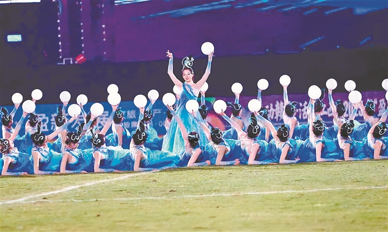 球员的奋力拼搏与球迷的呐喊助威,共同凝聚为属于宜春的集体记忆。主场赛事更成为展示宜春文化魅力的窗口。每个主场比赛日,由10个县(市、区)和宜春学院、宜春幼专、宜春职院选送的特色节目轮番上演:万载的烟花绽放夜空,铜鼓的客家歌舞演绎风情,高安的字门拳表演气势磅礴……一场场比赛,将绿茵赛事与全域文化生动融合。