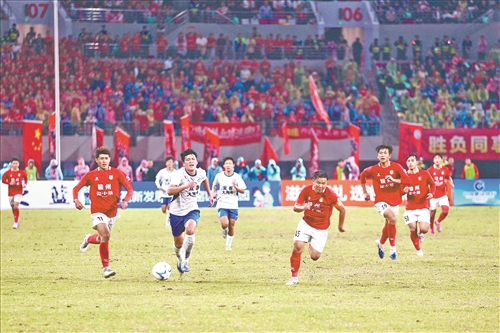 半决赛更是一场青春淬炼。10月5日,宜春队主场1∶0小胜抚州队。10月12日次回合鏖战,上演惊险的逆转再逆转。此役,抚州队上半场连进两球,将总比分反超。下半场第84分钟,宜春队绝地反击打进一球,再次将总比分扳平。常规时间结束,双方总比分战成2∶2,比赛被拖入赣超首次点球大战。