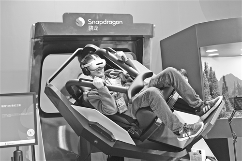 11月6日,参观者在第八届进博会技术装备展区高通展台体验XR设备。 新华社记者 张子彧摄