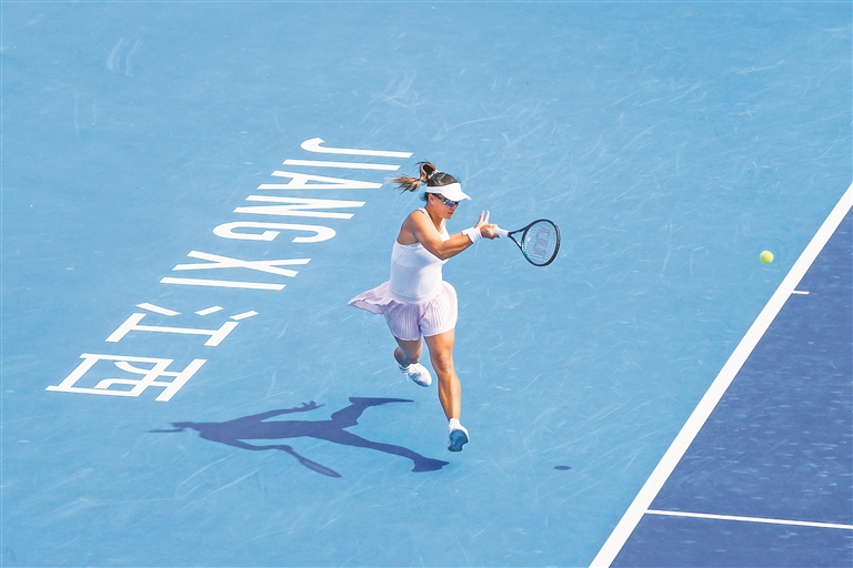 公益同行更彰显赛事温度。“网聚青春·逐梦未来”球员公益行活动中,冠军布林科娃与中国球员白卓璇走进青少年网球课堂,为20余名青少年网球爱好者现场指导技术、分享成长故事。布林科娃鼓励孩子们:“只要怀着热情与坚持,未来一定会有收获。”这项活动不仅助力本土网球后备人才培养,更让江网的社会责任与文化温度深入人心,形成“赛事+公益”的特色实践。