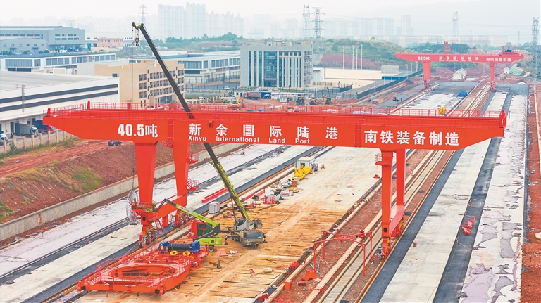 11月6日,新余国际陆港铁路专用线项目建设现场,工人正有序施工。该铁路专用线建成后,将极大提升赣西地区物流集散能力,降低企业运输成本,促进当地经济发展。