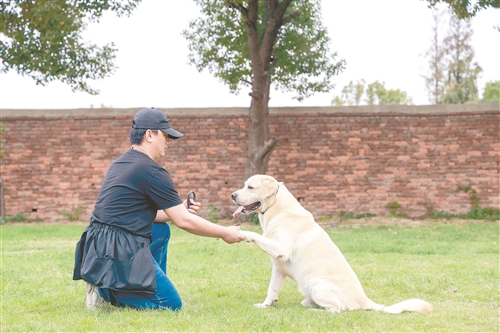 如今,宠物训练、寄养、美容等产业快速发展,成为宠物经济新增长点。图为近日,位于南昌市东湖区扬子洲的南昌拉酷宠物训练学校内,训练师正对宠物狗进行服从性训练。