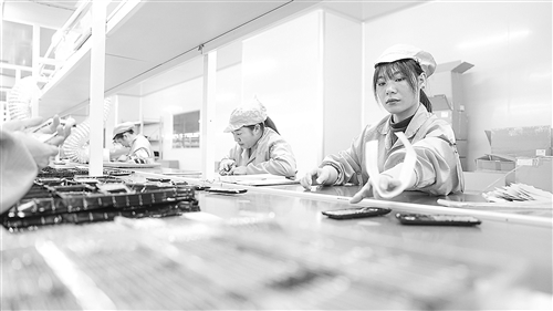 11月5日,在南丰县隆奕电子有限公司,工人正在生产车间赶制订单。 通讯员 李煜祖摄