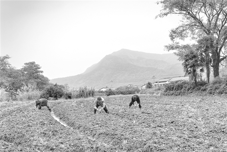 鹰潭市龙虎山景区上清镇抢抓冬种关键期,规模化推进油菜种植,种植面积超7500亩,绘就冬日田间劳作图景。图为11月10日,上清镇沙湾村村民在补种油菜。