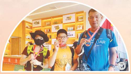 ⑦ 游客在萍乡武功山用捡拾的垃圾兑换环保奖章。