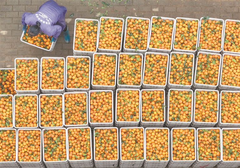 11月9日,泰和县塘洲镇塘洲村奔象果业砂糖橘种植基地,农民正在采收砂糖橘。特约通讯员 邓和平摄