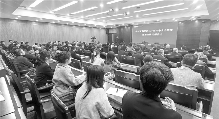 11月11日上午,学习贯彻党的二十届四中全会精神省委宣讲团报告会在江西师范大学举行。省委宣讲团成员、省委教育工委书记吴永明作宣讲报告。