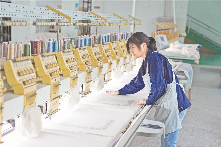 11月8日,位于分宜工业园区的江西恩达麻世纪科技股份有限公司内,工人正在赶制订单。本报全媒体记者 邹宇波摄