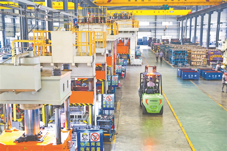 11月7日,位于庐山工业园区的九江荣腾汽车部件有限公司生产车间内,工人正抓紧生产,确保按时完成订单。特约通讯员 韩俊烜摄