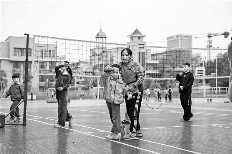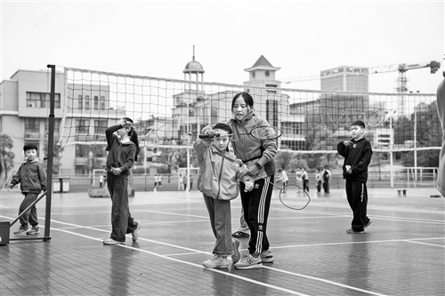 11月9日,在新余市长青小学,学生在老师指导下练习羽毛球、网球等。截至目前,该市共有91所公办义务教育学校开展课后服务,参与学生达13.78万人。