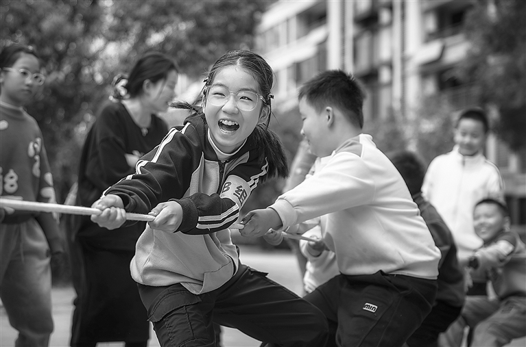 南昌市湾里管理局幸福街道爱民社区通过举办趣味运动会等形式,增进社区邻里情谊。图为10月26日,小朋友们在进行拔河比赛。本报全媒体记者 徐 铮摄