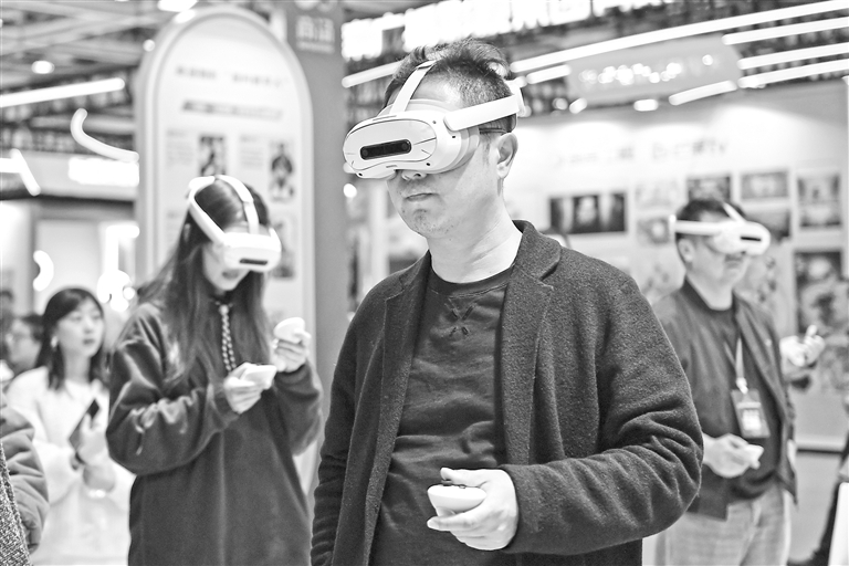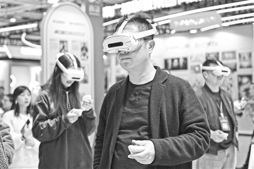 11月12日,观众在2025中国新媒体技术展上体验一款VR设备。 新华社记者 陈振海摄