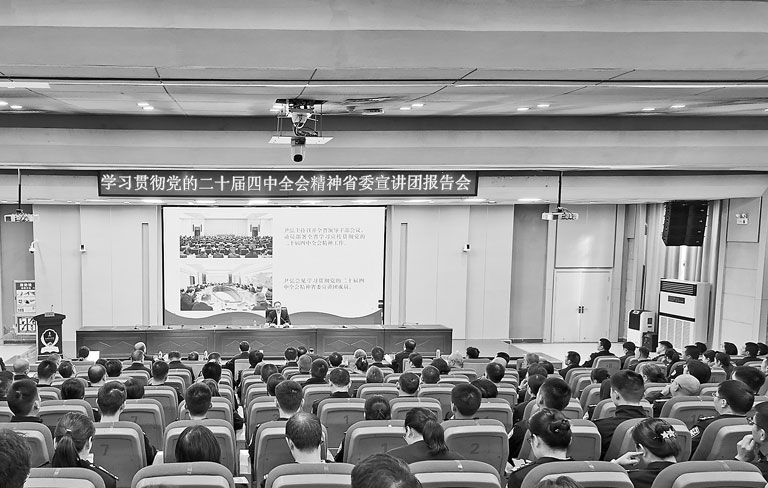 11月12日下午,学习贯彻党的二十届四中全会精神省委宣讲团报告会在赣州市举行。省委宣讲团成员、省委组织部分管日常工作的副部长徐忠作宣讲报告。