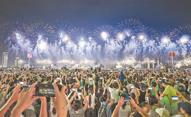10月1日的烟花晚会落幕后,八一大桥到朝阳大桥沿线的20多家商业体仍灯火通明,里面挤满了意犹未尽的市民和游客。20多家商业综合体、300多家企业同步跟进:延长营业时间、商品折扣、发放5万多张消费券,让观演人潮顺畅转为消费人潮。