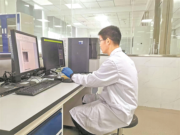 图为袁志勇博士正在进行电瓷材料扫描检测。