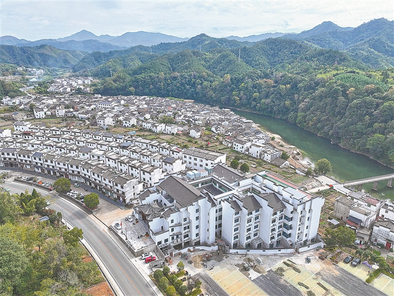 近年来,婺源县民宿行业作为经济新业态快速发展,“民宿+非遗”已成为文旅经济创新发展的新引擎。图为近日,江湾镇汪口村一栋以“徽州三雕”为主题的民宿正在进行收尾施工,预计年底营业。 本报全媒体记者 吴福清摄