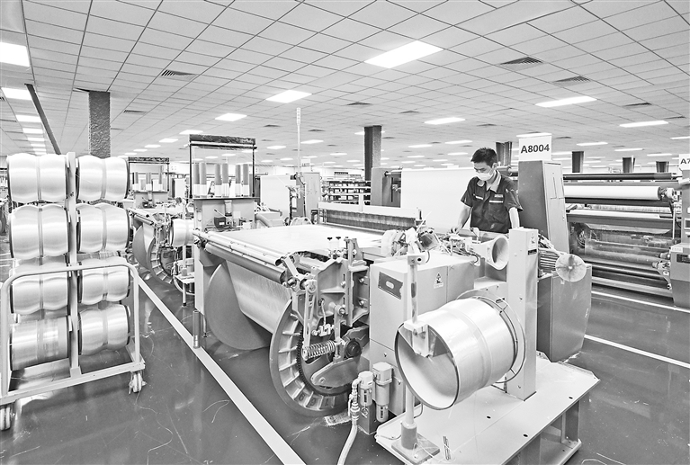 上犹县集聚玻纤企业190余家,形成从原料到成品的完备产业链,该县玻纤新型复合材料产业集群被列入我省“1269”行动计划中的建材产业链重要产业集群。图为11月11日,江西元源新材料有限公司生产车间,各类玻纤制品源源不断下线。 本报全媒体记者 吴文兵摄