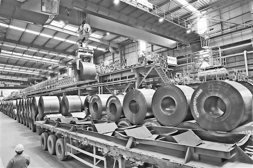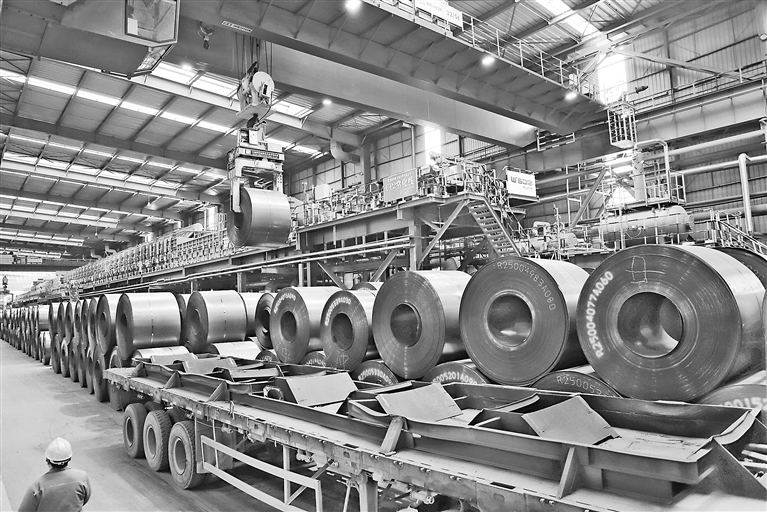 近年来,新余市渝水区通过推动钢铁产业链式发展,重点打造金属制品、优特钢带、钢结构,电工钢四大产业集群,助推工业经济高质量发展。图为11月4日,新钢新材料有限公司高牌号电工钢卷库,行车正在对钢卷进行吊装作业。通讯员 廖海金摄