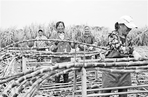 11月13日,抚州市临川区连城乡舍头村的“广西果蔗”种植基地,工人忙着打捆、装车甘蔗,供应市场。通讯员 郭 昊摄