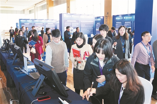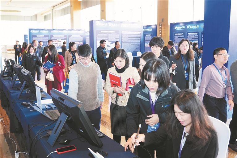 11月17日至18日,2025国际产学研用合作会议(江西)暨教育国际合作交流大会在南昌举行,国内外110余所高校近400名代表参会。图为与会代表参观我省教育国际化展示。赣教轩摄