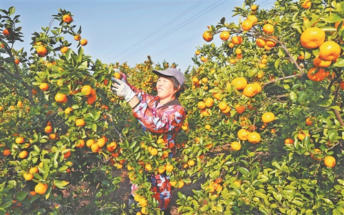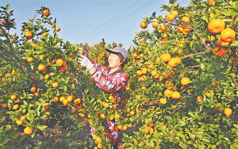 11月15日,新余市渝水区下村镇虹桥村蜜橘种植基地,果农按照订单采摘蜜橘供应市场。近年来,渝水区采取“合作社+基地+农户”模式,大力发展蜜橘产业,今年22万亩蜜橘喜获丰收。通讯员 廖海金摄