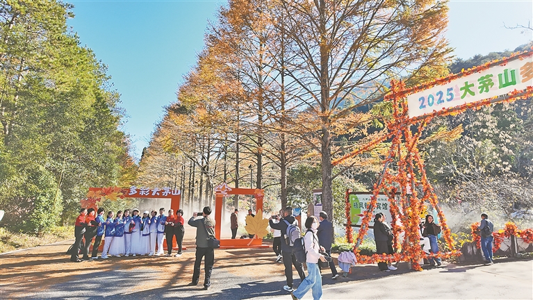 每年秋冬季,德兴市大茅山便悄然呈现出明亮热烈的色彩。11月15日,2025大茅山多彩红杉季主题活动在梧风洞景区启幕,吸引各方游客前来一睹美景。本报全媒体记者 徐黎明摄