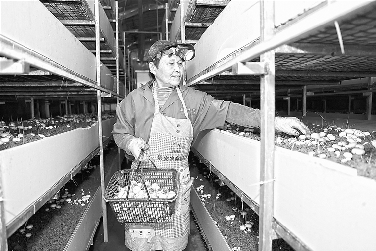 双孢菇产业是乐安县助力乡村振兴的支柱产业,目前全县已发展双孢菇基地126个,建成投产双孢菇大棚1445个,年产值超1亿元,带动全县6000余人务工增收。图为11月19日,增田镇长江村双孢菇种植基地,村民正在采收双孢菇。 本报全媒体记者 吴福清摄