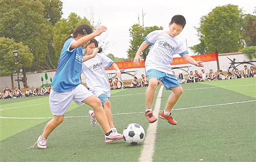 近年来,余干县通过常态化举办足球联赛,推动体教融合,引导孩子们投身运动、强健体魄。图为近日,在该县古埠镇中心小学举办的足球联赛中,小将们奋力拼搏,展现青春朝气。陈若薇摄