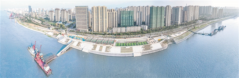 (压题照为长江国家文化公园九江城区段三期项目滨江段主体工程有序推进。李涛渊摄)