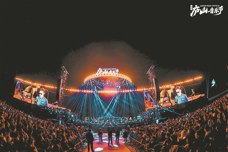 11月15日,由沉舟、丢火车、回春丹、二手玫瑰、万年青年旅店等乐队倾情参与的第二届庐山音乐节,在庐山市营地公园举办。伴随着无人机编队表演与绚烂的烟花秀,“我爱庐山”等字样及爱心图案在空中绽放,这场气氛超燃的音乐盛宴,吸引了全国各地数万乐迷来到现场,于激情律动中感受音乐与山水的诗意共鸣。