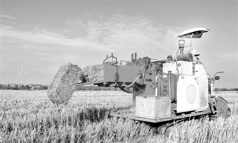 近年来,新余市渝水区依托秸秆收储运体系,通过秸秆肥料化、饲料化、能源化、基料化等方式加快秸秆资源化综合利用,让秸秆变废为宝。图为11月20日,在渝水区南安乡朝阳村,农民正驾驶农机将秸秆打包回收。通讯员 廖海金摄
