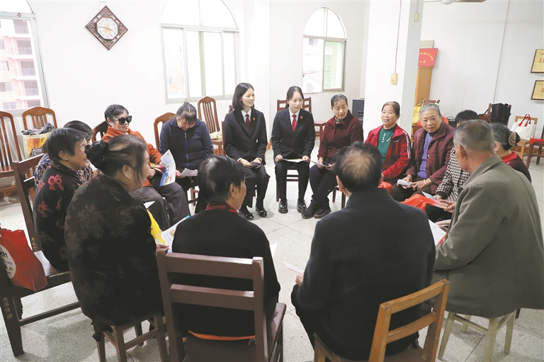 同时,新城法庭坚持落实“谁执法谁普法”责任制工作要求,利用农村赶圩习俗,因时因地制宜开展“圩日法庭”普法活动,现场答疑解惑,就地化解纠纷。将“规行矩步”“立身厚道”“尊老爱幼”等周氏家训内容融入普及法律知识、宣讲典型案例过程中,让更多农村群众知法守法、学法用法,切实推动好家风、好乡风、好民风的传播。今年以来,新城法庭已开展巡回审判、摆摊普法、法治宣讲等活动27场,解答法律咨询134人次,发放宣传手册2300余份。吴忠南文/图
