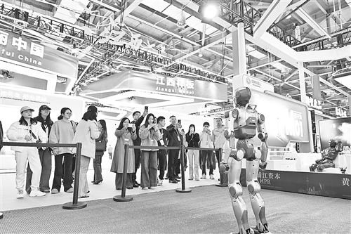 在Vbot维他动力展位前,电子狗在人群间灵动穿梭:抬起前爪“问好”、跟随指令转向,引得围观者频频举起手机记录。在本届博览会上,新能源、人工智能、低空经济等新赛道科技成果集中亮相,同样成为海内外嘉宾关注的焦点。