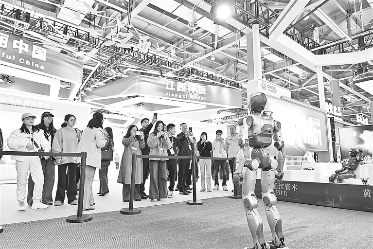 “这发电玻璃真神奇,外观和普通玻璃一样,竟然能靠阳光发电!”参展观众柳楠边体验边感叹。江西主题馆绿色城乡板块内,一块碲化镉发电玻璃被围得水泄不通。不远处,绿色农业展区香气馥郁——富硒大米、赣南脐橙、有机山茶油等优质农产品让观众仿佛置身生态田园,绿色好物引得赞声不断。