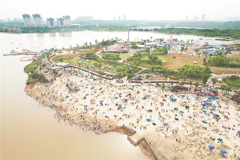 五年来,红谷滩区激活水生态带动水经济,风光更美。坐拥赣江滨江的天然禀赋,红谷滩区用心打磨“水清岸绿景美”的生态名片,让“水韵”成为城市最动人的底色。滨江风光带上,凤凰湾、摩天湾、九龙湾三处天然泳场依次铺开,阳光沙滩、疏林草地与江景相映成趣,成为市民戏水避暑的首选;游船码头正式运营后,“赣江夜游”航线点亮两岸灯火,游客乘船而行,尽览城市夜景的璀璨魅力。生态公园建设同样马不停蹄,马咀山湿地公园已完成26万平方米绿化种植,湿地栈道蜿蜒其间,观鸟台静候候鸟驻足;鱼目山体育公园主体工程完工,运动场地与自然景观巧妙融合,成为市民健身休闲的新去处。如今,漫步赣江岸边,江风裹挟着草木清香拂面而来,绿意盎然的景致让红谷滩成为名副其实的“幸福港湾”。