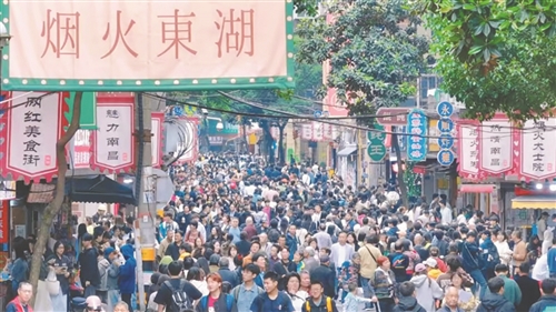 夜幕降临,创新的活力转化为城市的烟火气。福州路酒吧街流光溢彩,完成亮化升级后的街道更加璀璨夺目;蛤蟆街夜市人声鼎沸,“深夜食堂”的招牌在夜色中格外醒目;大顺巷小吃街完成升级改造,传统与现代在此完美融合。“胜利归来”暨东湖区“优化营商环境、促进消费升级”、中国米粉节东湖区胜利路步行街分会场、蛤蟆街赣菜夜市美食节等“夜东湖”促销活动,将一个个平凡的夜晚变成消费的黄金时段,“三街二点一区”夜间发展生态圈已初步形成。