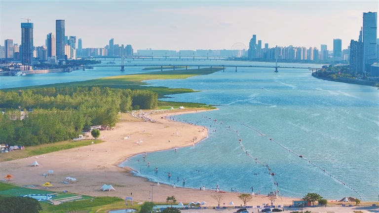 健康,源于持续的环境改善。2022年5月,一只被誉为“林中仙子”的寿带鸟现身扬子洲,它用翅膀为东湖区的生态环境投下了“信任票”。同样在扬子洲,站在渔业村的观豚平台上远眺,四五头江豚接连跃出水面,在赣江北支扬子洲段嬉戏,曾经难得一见的“微笑天使”结队归来,成为赣江南昌段水生态改善最生动的注脚。数据为之佐证:2024年,东湖区空气优良率达92.9%,PM2.5改善9.2%,国考、省考断面水质优良率连续保持100%。赣江干流八一桥国考断面、西河国考断面、经开风顺码头省控断面、青山湖电排站省控断面年均值均达到地表水Ⅱ类考核标准,实现了我省提出的“力争赣江干流基本达到Ⅱ类水质”的目标要求。