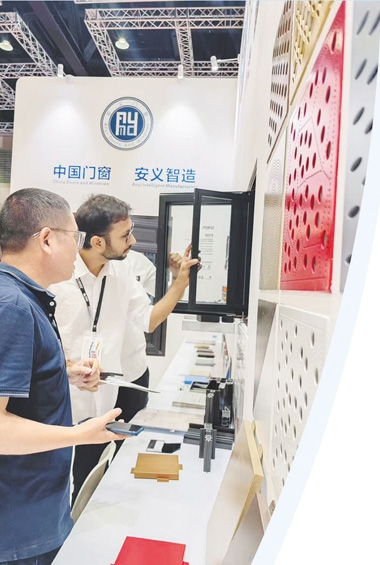 品牌建设是安义铝型材出海的重要支撑。2023年12月,安义门窗集体商标授牌仪式举行,该商标成为安义县首个建材行业集体商标。2024年,安义门窗体系团体标准编制完成。这些标准涵盖产品的规格、尺寸标准,以及质量、安装、服务等环节,标志着安义铝型材从贴牌代工迈向品牌输出。在国际国内各大建材展上,安义门窗集体商标那抹深蓝色总是那么耀眼。