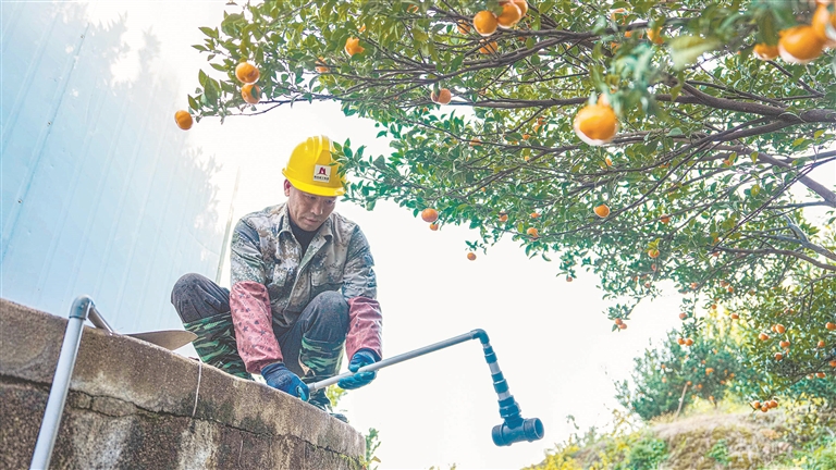 近年来,南丰县持续完善农村供水体系,让汩汩清泉成为滋养乡村、惠及民生的“幸福水”。图为11月26日,三溪乡柏苍村农村饮水工程项目现场,工人正加紧施工。