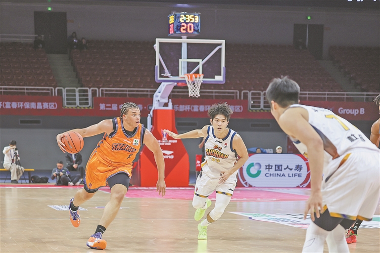 12月3日,第二届CBA俱乐部杯赛小组赛南昌赛区首战在南昌国体中心举行,上海久事队(橙色队服)111∶72战胜四川丰谷酒业队,迎来开门红。本报全媒体记者 李 征摄