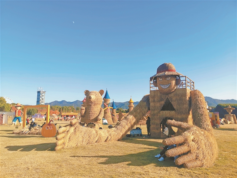 近期天气晴好,萍乡市各地乡村旅游热门景点人气爆棚,市民纷纷走出户外,尽情拥抱冬日暖阳。图为芦溪县宣风镇一网红景区推出稻草造型展,吸引游人前来打卡。