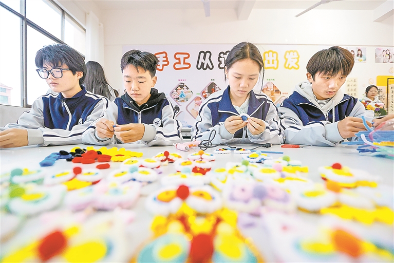 近年来,峡江县大力发展职业教育,通过深化产教融合、校企合作与订单培养等举措,为当地高质量发展夯实人才基础。图为12月4日,峡江县职业中专学生在做手工。 特约通讯员 陈福平摄