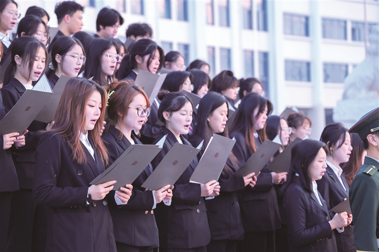 12月4日,第十二个国家宪法日,全省各级各类学校以主题宣讲、集体诵读等方式,营造尊崇宪法、学习宪法、遵守宪法、维护宪法、运用宪法的浓厚氛围,推动宪法精神深入人心。图为江西服装学院的学生代表,齐声诵读宪法部分章节。晏嘉杏摄