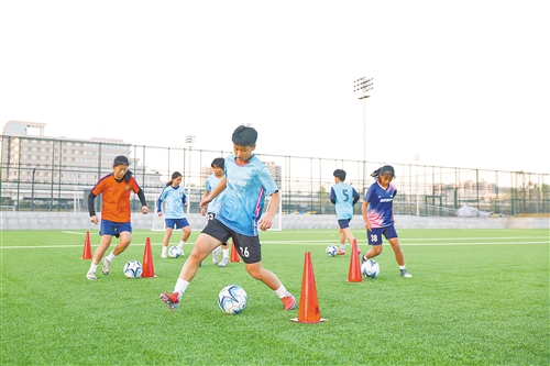 “虽然整体项目还没完全收尾,但从今年3月起,已建成的球场就免费对市级训练队开放了。现在每天有4支队伍在这里训练,涵盖初一、初二的男女足,未来每年还会各增一支队伍,逐步完善U13至U18队伍的培养体系。”青训中心总教练韩翔宇介绍。
