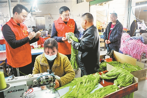 德兴市黄柏乡组织市、乡两级人大代表深入农家院落和田间地头,倾听民声民意。图为12月6日,该乡人大代表前往长田村一家来料加工企业走访,助企纾困。 本报全媒体记者 徐黎明摄